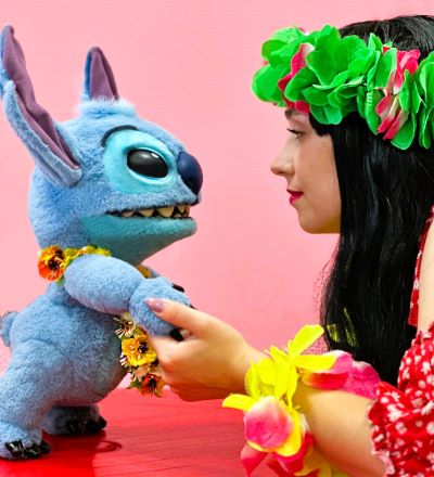Цікавий факт: наш Стіч унікальний, справжній та живий! Він такого ж зросту, як у фільмі, ворушить своїми грандіозними вушками, кліпає очима, розмовляє, голосно нюхає незнайомців і любить, коли його гладять по голові! Тоді він базікає і бурмотить від задоволення! Діти можуть потримати Стіча на руках і зробити пам'ятне селфі!
